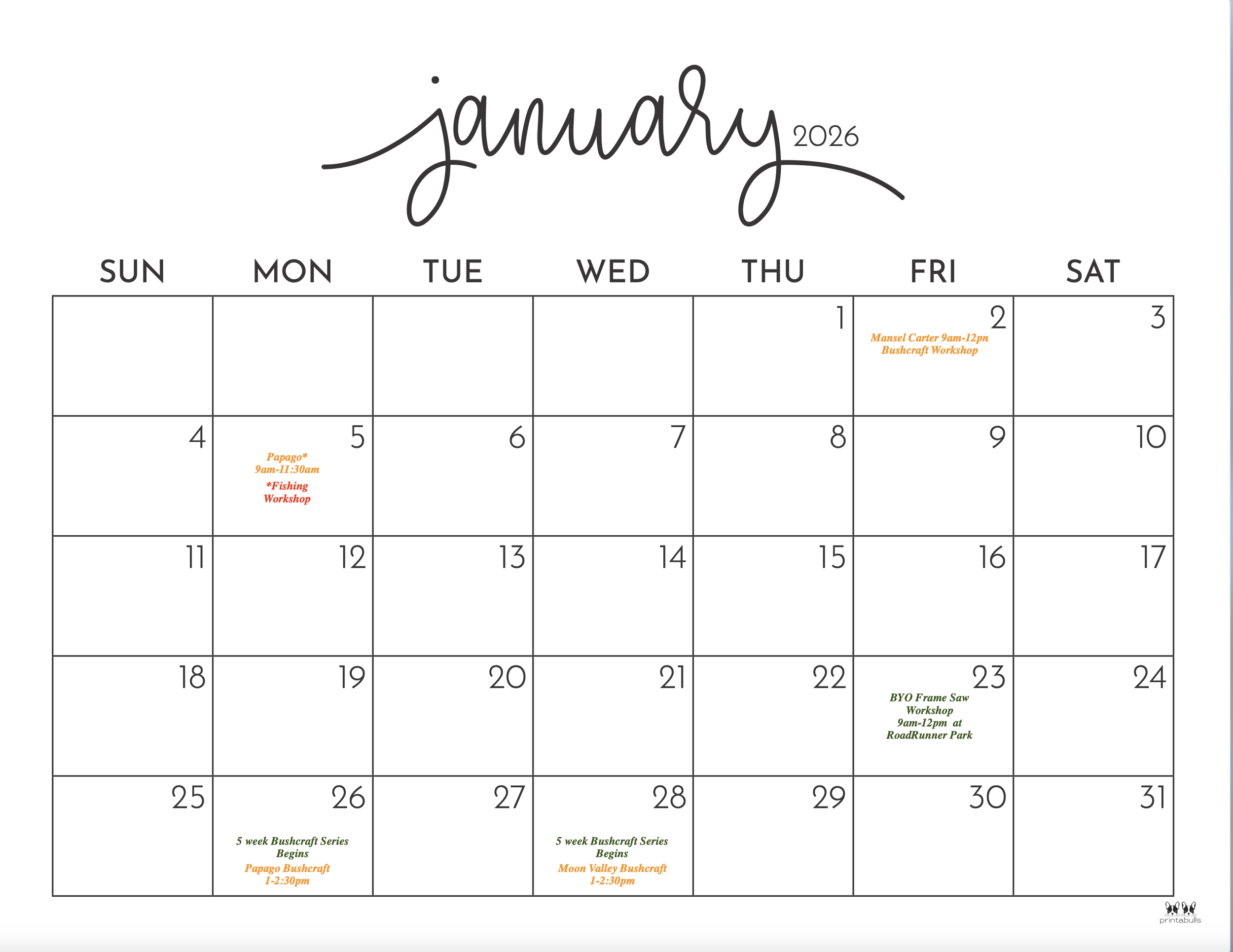 *Both Bushcraft opportunities listed in the drop down WILL NOT have class November 25th or November 27th.