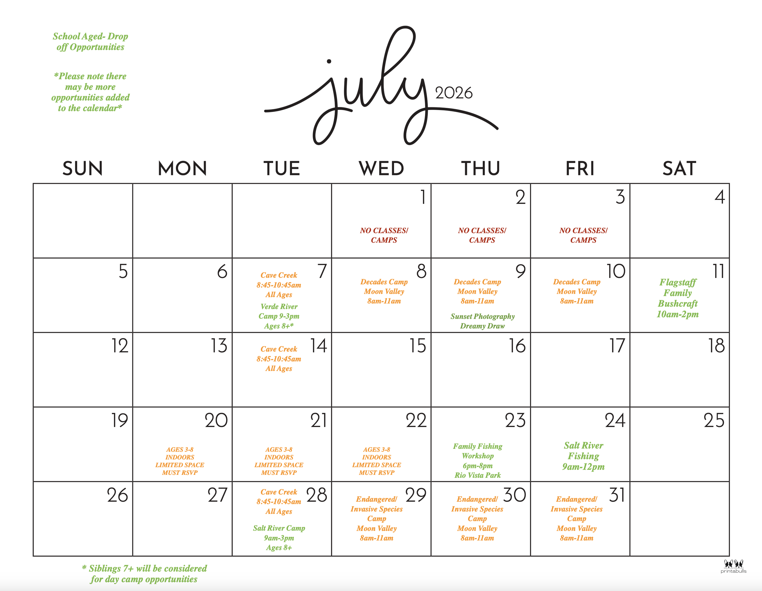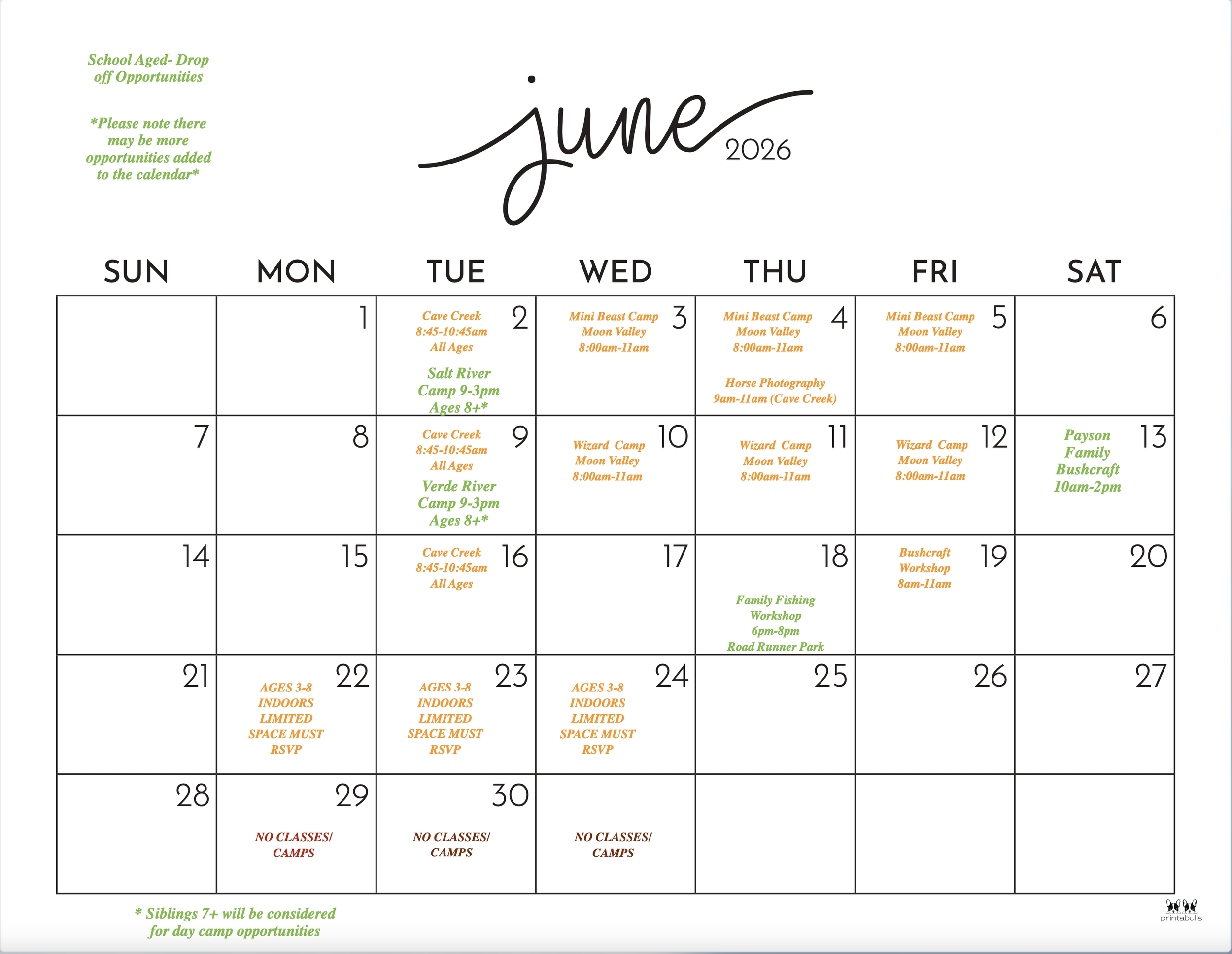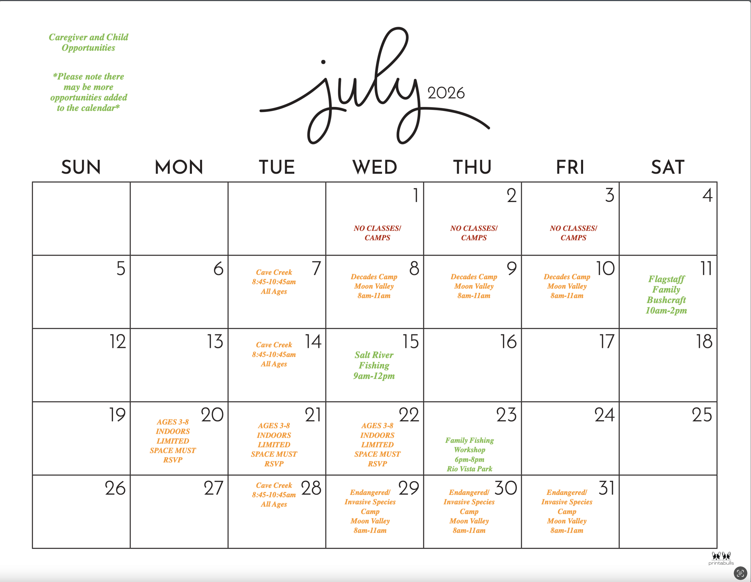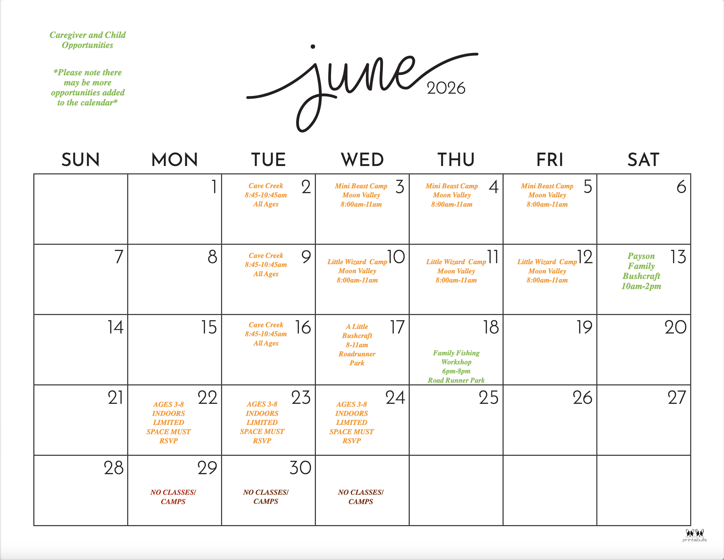 -There will be indoor and outdoor activities available throughout the summer.